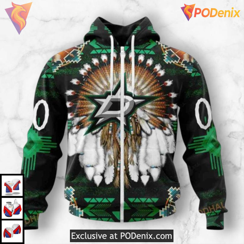 Custom 3D Dallas Stars Zip Up: Explore Traditional Native Costume Style