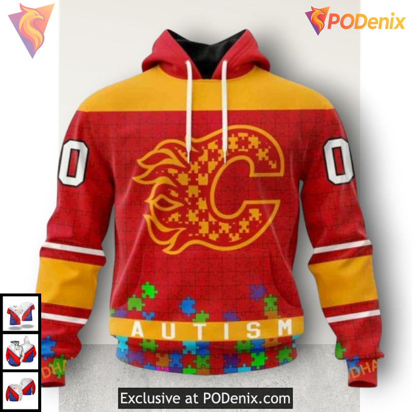 Unisex Calgary Flames Autism Awareness Apparel – 3D Hoodie Tribute