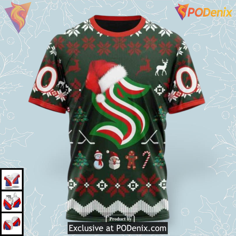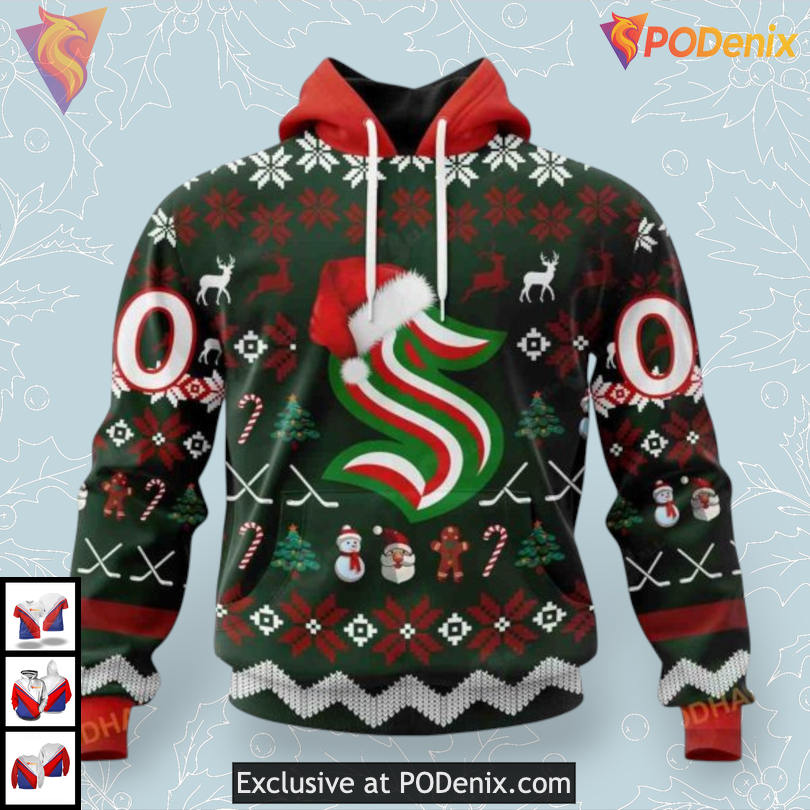 Product Information for Unisex Christmas Shirt Concept Custom NHL Seattle Kraken Kids Hoodie 3D: