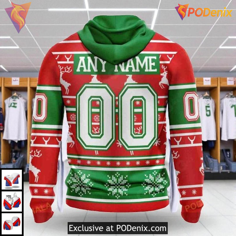The Minnesota Wild All Over Print Hoodie showcases vibrant colors and an eye-catching design that embodies the spirit of hockey fandom. With its dynamic graphics and energetic vibe, it’s perfect for showcasing your love for the team throughout the holiday season.