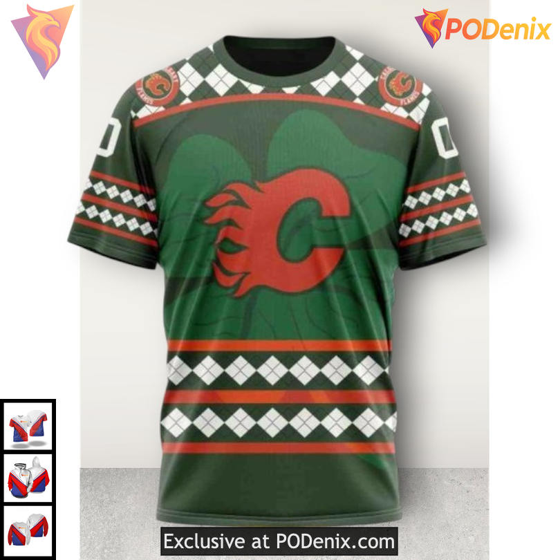 Celebrate St. Patrick’s Day with Calgary Flames St Patrick’s Day Apparel in Bold 3D Style!