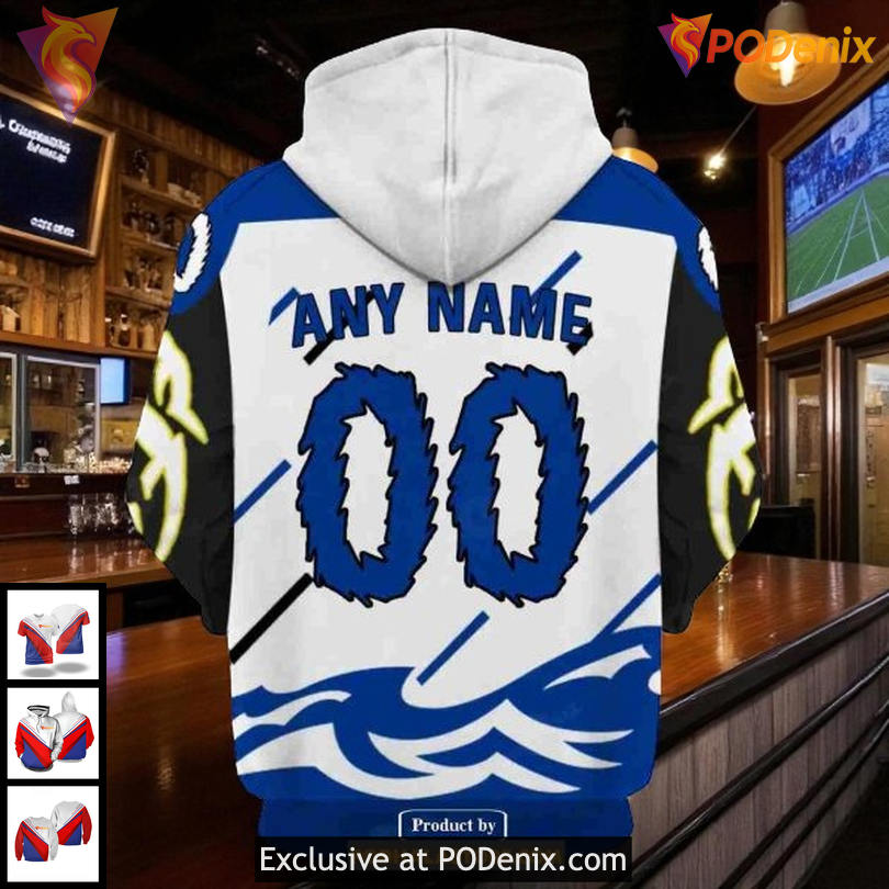 Unisex Tampa Bay Lightning Hoodie brings a bold Reverse Retro vibe with waves, lightning, and the quote Any Name 00 for a standout fan look.