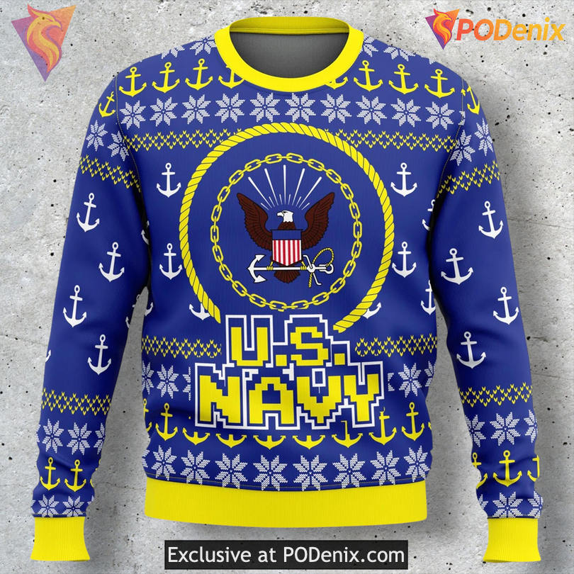 Shop the Us Navy Anchor Emblem Festive Sweater for a Unique Holiday Look
