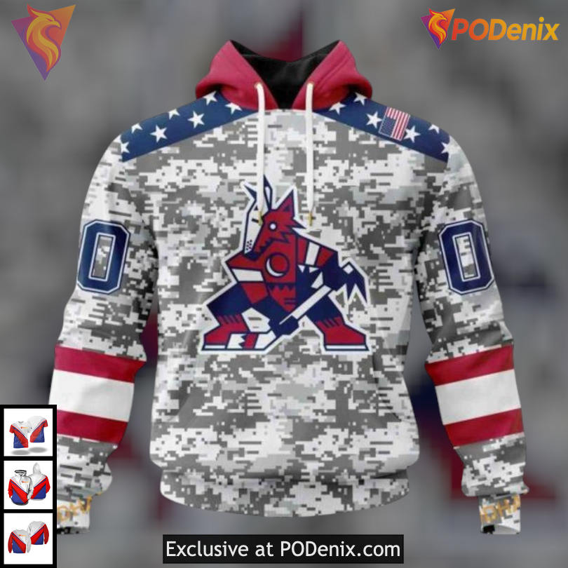 Embrace the spirit of Veterans Day with the Arizona Coyotes Sweatshirt Hoodie, a perfect addition to your game-day attire that celebrates both your team and those who have served.