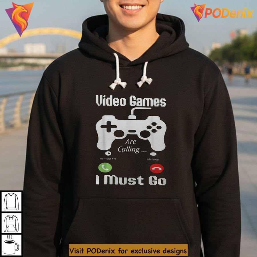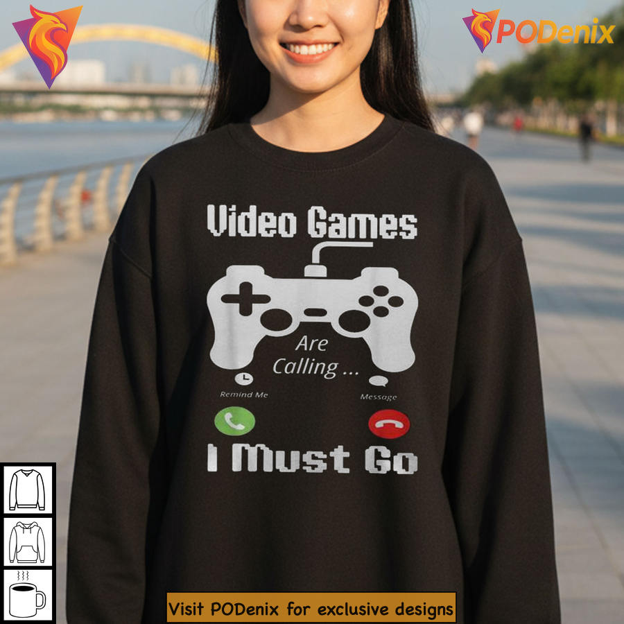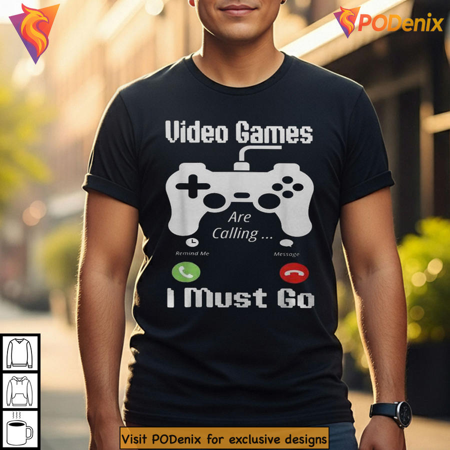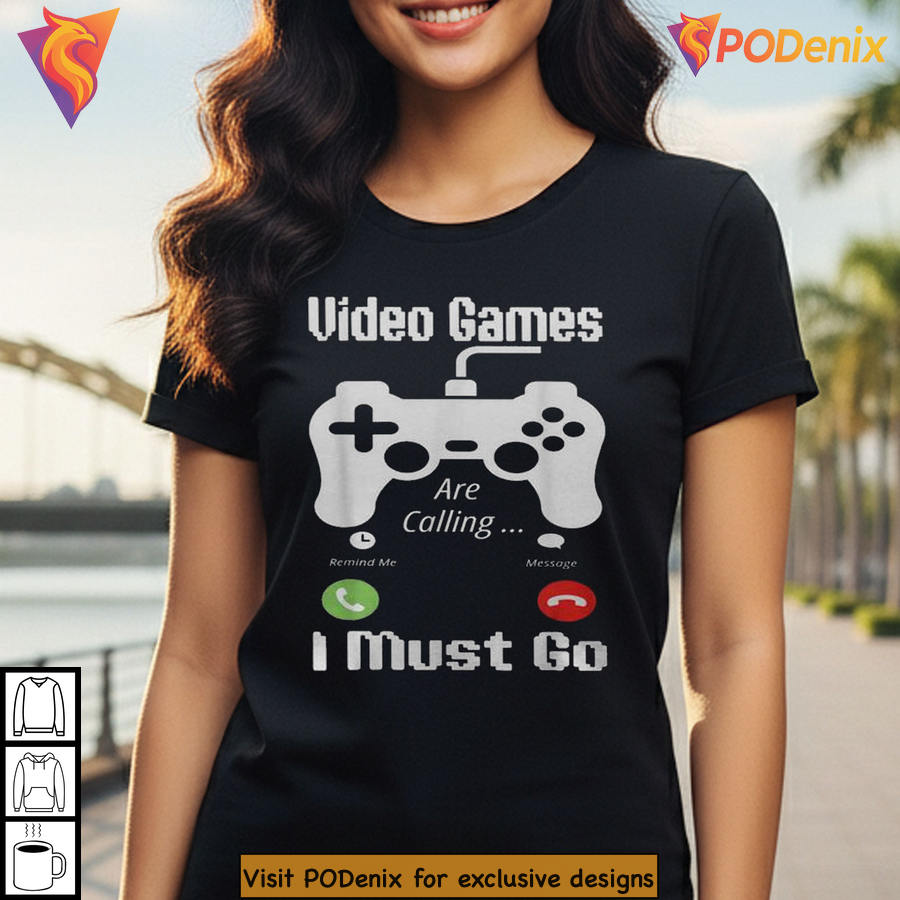 Video games are calling shirt delivers a playful spin on gamer culture with the bold phrase Video Games Are Calling I Must Go and its retro controller look. It’s lighthearted, fun, and speaks directly to every true gamer’s heart.