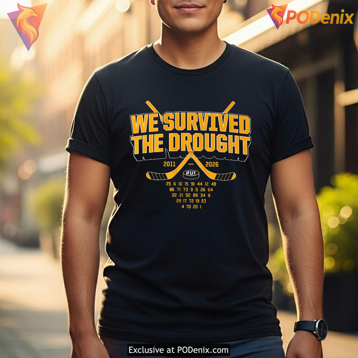 Product Information for We Survived The Drought 2011-2026 Buffalo Sabres Hockey T-Shirt: