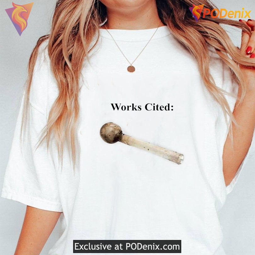 Works Cited Crack Pipe shirt captures raw irony with a shocking twist on academic norms. The bold text “Works Cited” contrasts the crack pipe image, creating an unforgettable visual punch rooted in dark humor culture.