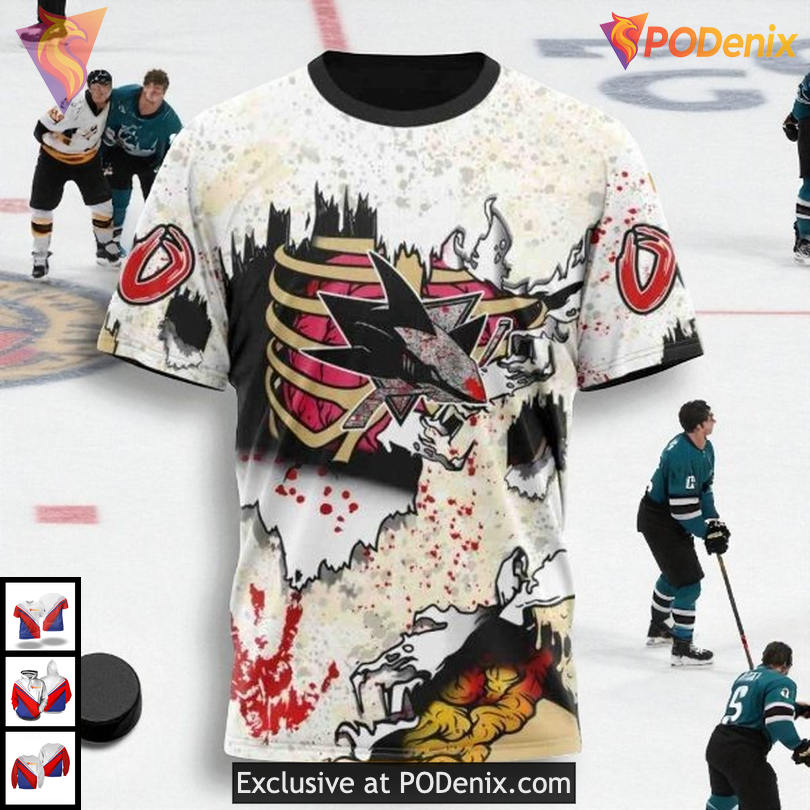 Embrace the chilling excitement of Halloween festivities with the Personalized San Jose Sharks Hoodie, making you the life of the party while celebrating your favorite team in style!